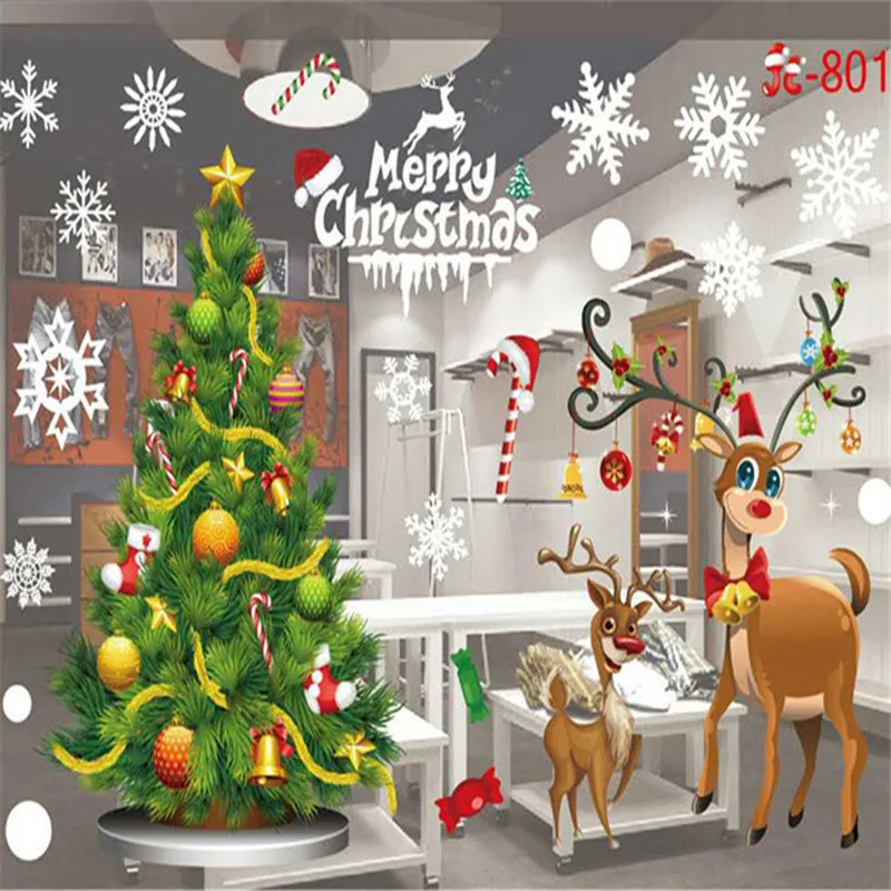 Christmas window glass stickers home wall stickers bedroom decor snow month Christmas mall window glass decorative stickers